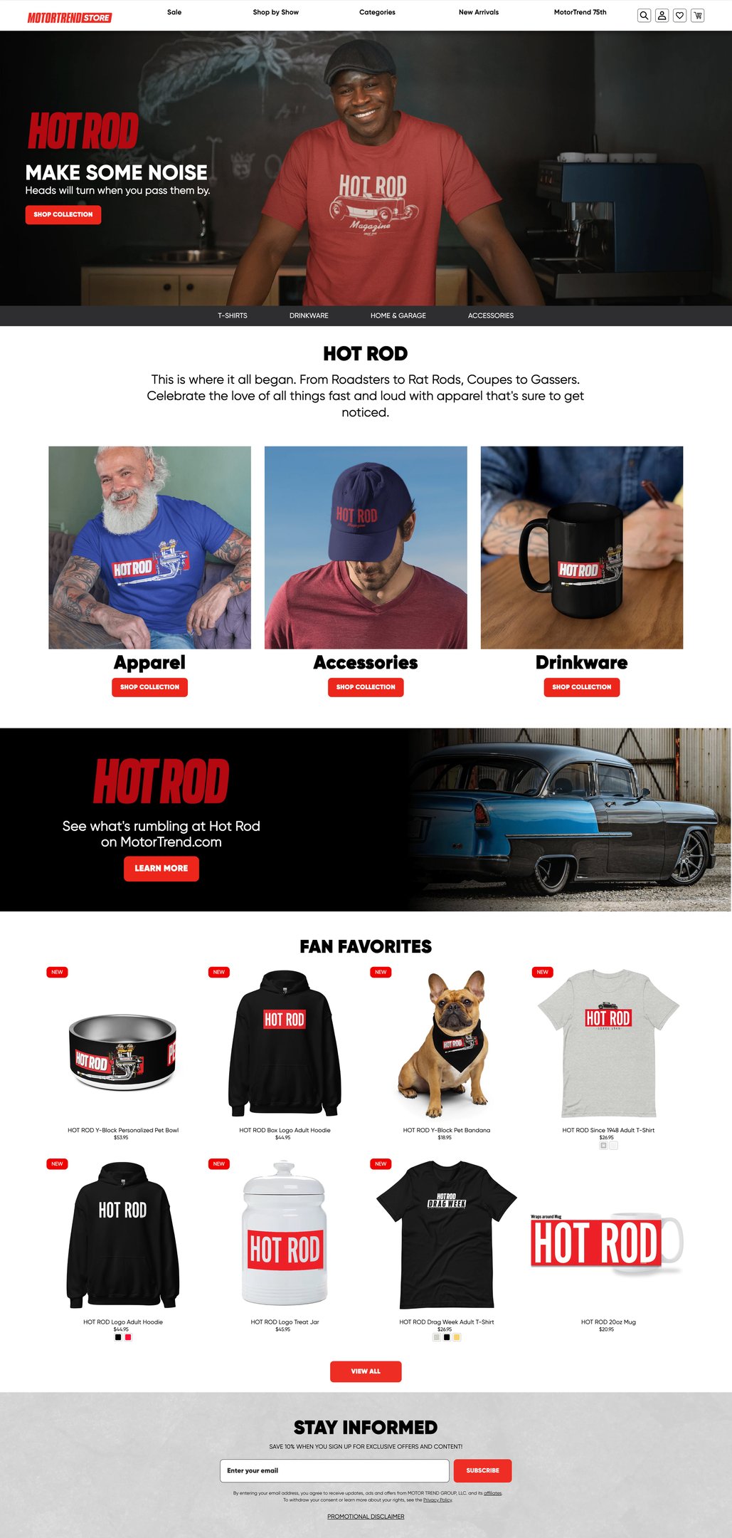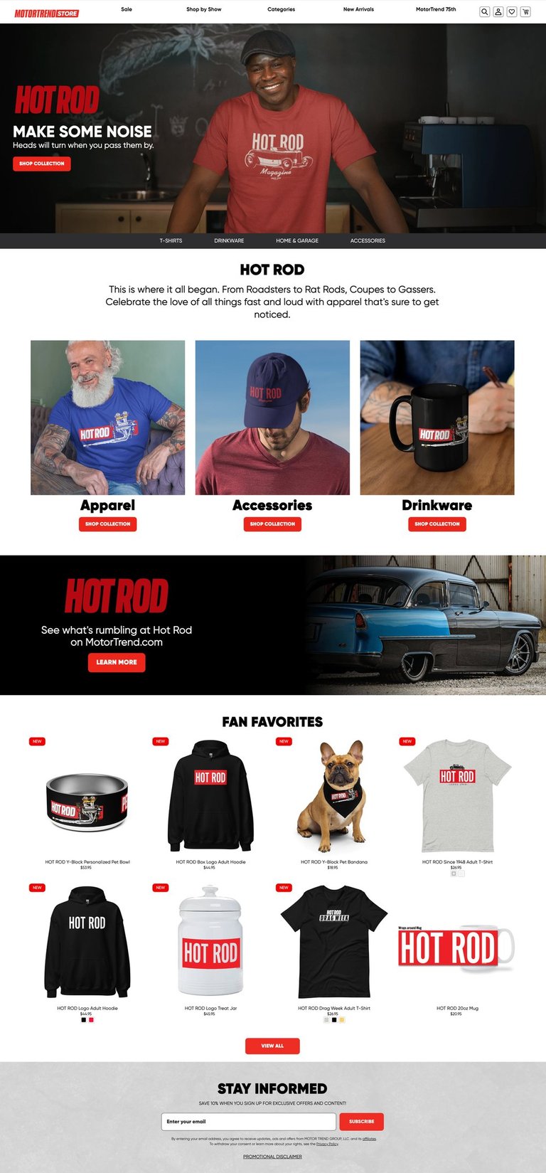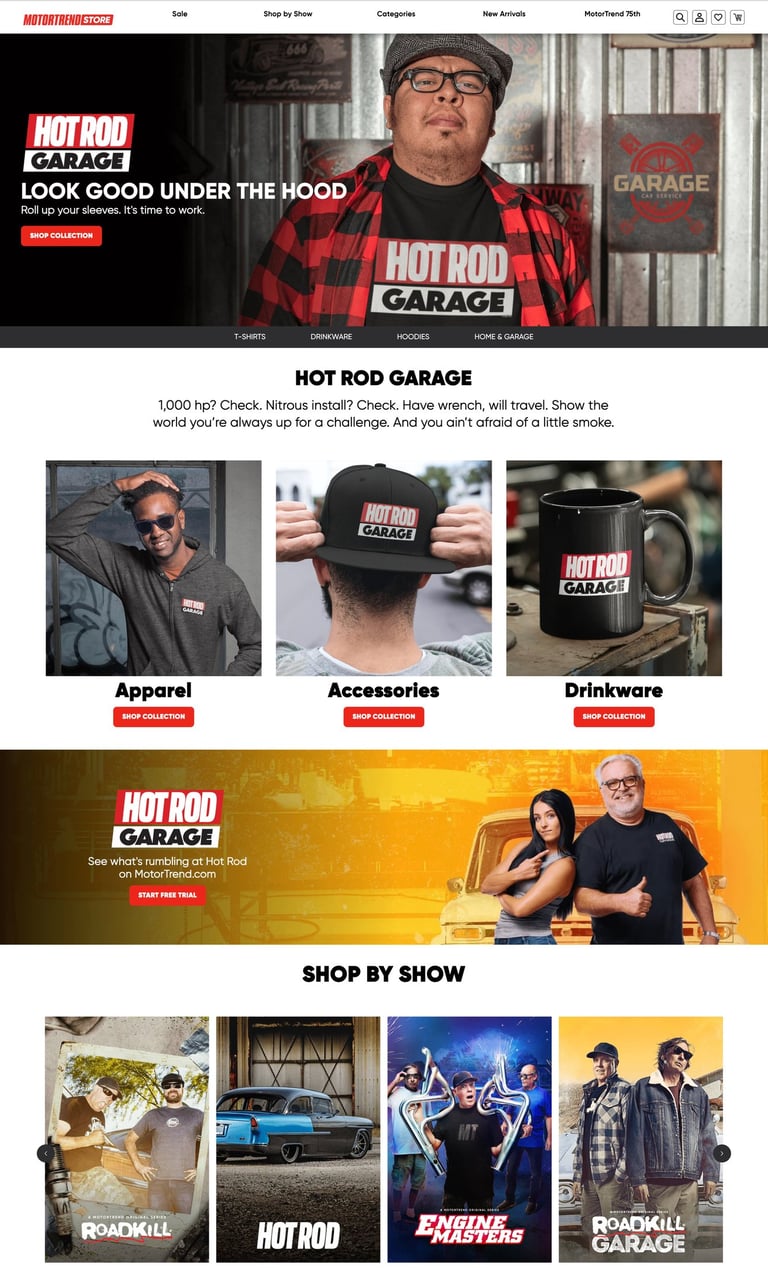 The official MotorTrend Store offers apparel, drinkware, accessories, and collectibles inspired by MotorTrend’s most popular brands like Roadkill, Hot Rod, and Super Street. Fans of the shows can shop new arrivals, exclusive collections, and best sellers while enjoying the inside jokes written in the product descriptions.